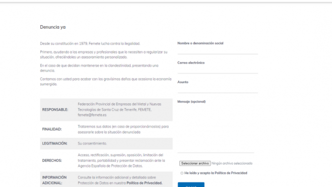 La Federación Provincial de Empresas del Metal y Nuevas Tecnologías de Santa Cruz de Tenerife, Femete, ha abierto un servicio de denuncia anónima para investigar los negocios que operan a través de la economía sumergida. Este servicio se enmarca dentro del proyecto EmergeYa 2021, subvencionado, en régimen de concurrencia competitiva, por la Consejería de Economía, Conocimiento y Empleo del Gobierno de Canarias.