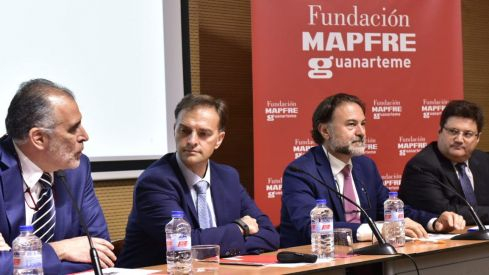 El presidente del Instituto de Censores Jurados de Cuentas de España, Mario Alonso Ayala; acompañado por el presidente del ICAC, Enrique Rubio Herrera; el presidente de la Agrupación de Las Palmas, Juan Luis Ceballos Toledo; el presidente de la Agrupación de Tenerife, Corviniano Clavijo Rodríguez; y el presidente de la Audiencia de Cuentas de Canarias, Rafael Díaz Martínez; presentaron este estudio este lunes 19 de junio que muestra una radiografía del sector de la auditoría en España y su impacto económico, en el Día del Auditor de Las Palmas.