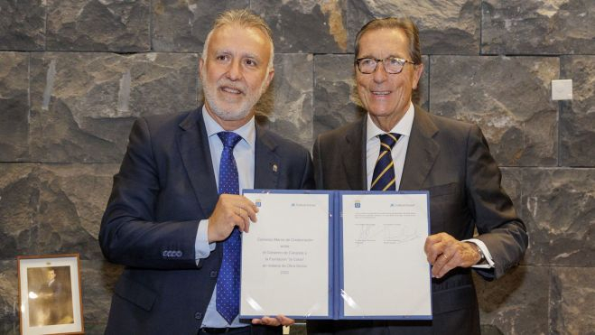El presidente del Gobierno de Canarias, Ángel Víctor Torres, y el director general de la Fundación ”la Caixa”, Antonio Vila Bertrán, han firmado un acuerdo marco que recoge la colaboración entre ambas instituciones en materia social, educativa, científica y cultural. Esta colaboración establece que la Fundación ”la Caixa” incrementará su presupuesto anual para acción social a 16 millones de euros, frente a los 15,5 millones de 2021.