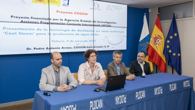 Se trata del proyecto de cooperación transnacional para el desarrollo de una solución que ahorre energía y agua en instalaciones costeras mediante dispositivos de captura de energía oceánica (COOSW), que prueba la tecnología COOL STEAM, un sistema de desalinización de agua de mar por destilación al vacío, según ha informado la Plataforma en un comunicado. El proyecto propone una solución que aprovecha recursos naturales como son el gradiente de temperatura, es decir, de la variación de la temperatura "de la columna de agua y la energía de las olas para la desalinización de agua de mar y la refrigeración de pequeñas instalaciones cercanas a la costa".