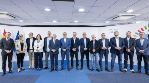 El consejero de Hacienda, Román Rodríguez (NC), y el presidente de la corporación insular, Antonio Morales (NC), han suscrito el documento, junto al alcalde de Agüimes y comisionado insular de Gran Canaria en la Federación Canaria de Municipios (Fecam), Óscar Hernández (NC), y representantes de 13 de los 18 ayuntamientos beneficiarios del programa.