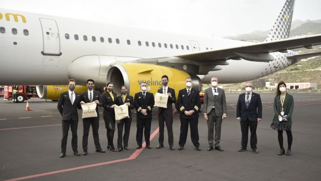 La Palma ya está conectada con París. La compañía Vueling realizaba este domingo su primer vuelo con el aeropuerto palmero, estrenando así una conexión pionera en la isla. Se trata de una ruta que conectará la isla bonita con París a través de una frecuencia semanal que unirá ambos destinos todos los domingos.