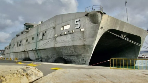 El USNS Trenton, un catamarán especializado en el transporte de las tropas militares de EE UU, pasa la Navidad en el Puerto de Las Palmas debido al mal tiempo de esta semana, que le ha impedido poner rumbo a su próxima misión en las zonas calientes de Oriente Medio y de otras regiones en conflicto.