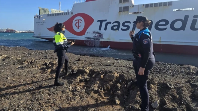 El barco, que iba vacío de pasaje y carga en el momento del siniestro, se encuentra ya en su atraque habitual en el muelle Nelson Mandela de la ciudad después de que dos remolcadores lo sacaran del lugar en el que había encallado, y no se ha detectado contaminación ni daño en los tanques que contienen combustibles o productos contaminantes, según una comunicación de la Marina Mercante.
