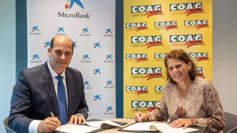MicroBank y la Coordinadora de Organizaciones de Agricultores y Ganaderos de Canarias (COAG Canarias) han suscrito un convenio de colaboración para facilitar el relevo generacional en el sector agrario e incentivar la actividad emprendedora en el ámbito rural a través de microcréditos. En el acto de firma han participado el director territorial de CaixaBank en Canarias, Manuel Afonso, y la presidenta de COAG Canarias, María del Carmen Pérez.