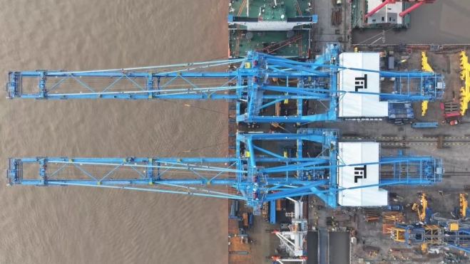 La maniobra de atraque y descarga de estas grúas desde el buque de transporte especializado será un espectáculo de ingeniería que se prolongará durante los próximos días, antes de que comiencen las pruebas de operatividad.