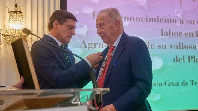 La Asociación de Organizaciones de Productores de Plátano de Canarias ha concedido a Leopoldo Cólogan la Insignia Honorífica de Plátano de Canarias, en reconocimiento y agradecimiento a su labor de defensa del sector.