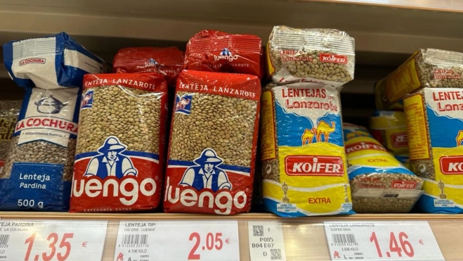 Las lentejas son otro producto estrella. El precio por un paquete de medio kilo de la marca luengo ha pasado de 89 pesetas –0,54 euros– a 2,05 euros. La pasta, por ejemplo de Barilla, estaba a 119 pesetas (0,71 euros) y ahora a 1,53 euros. El arroz Brillante ha subido casi un euro. De 0,99 euros a 1,98. ¿Su precio en pesetas? 165.