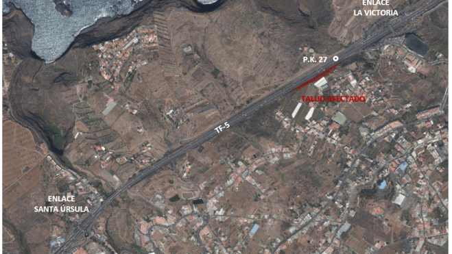 El área de carreteras del Cabildo de Tenerife comienza unas obras de emergencia en la TF-5 para subsanar un talud inestable ubicado en el término municipal de La Victoria de Acentejo, en sentido Santa Cruz.