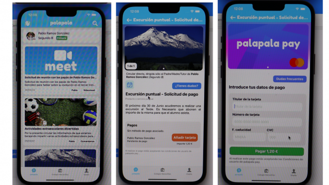 Palapala es un modelo de pago, pero también una red social. Las familias están más cerca de las actividades del colegio: un festejo como el Día de Canarias, una excursión o una circular informativa por parte del centro ya no es un papel impreso que llega a los padres a través de una mochila o un email, ahora lo hace mediante una notificación directamente al móvil. “Vimos que no había una forma eficiente de comunicarse con las familias”, explica Francisco Rodas, CEO de Palapala, quien a través de otra empresa matriz que ya trabajaba con colegios, vivió en su propia carne lo tedioso de los permisos y pagos con las familias.