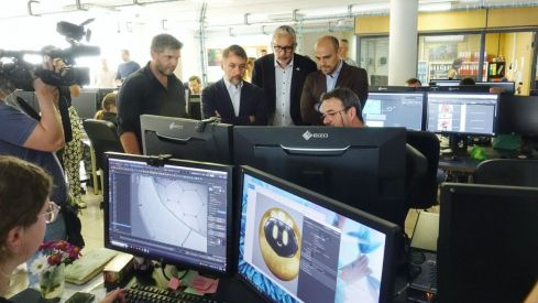 El alcalde de la ciudad, José Manuel Bermúdez, visitó este jueves los estudios acompañado del consejero delegado de la Sociedad de Desarrollo, Alfonso Cabello; el CEO de Atlantis Animation, Raúl Carbo; y de Bernard Lonis, presidente de la asociación de empresarios Zona Centro.