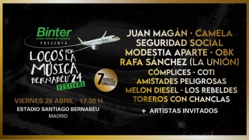 El Estadio Santiago Bernabéu estará de estreno después de su remodelación y abrirá sus puertas el próximo 26 de abril a las 17:00 horas para celebrar el festival Locos por la Música, que llega de la mano de la compañía aérea Binter.