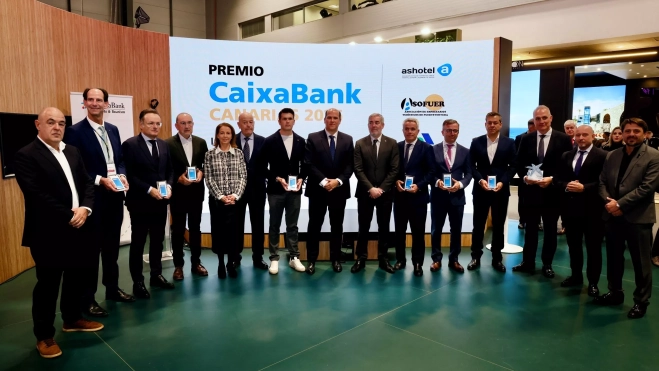 Además, en el transcurso de Fitur, CaixaBank también ha celebrado una ceremonia de entrega de premios en el estand de la entidad, en la que Roberto Konrad ha sido reconocido por su labor al frente del grupo Hovima Hotels, grupo familiar canario con más de cincuenta años de trayectoria, que ha tenido un papel clave en el fortalecimiento del sector turístico en las Islas.