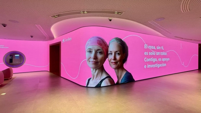 Además, para contribuir a la concienciación en general de la sociedad, la entidad financiera ilumina de rosa durante toda la semana sus principales edificios en algunas de las grandes capitales. Por primera vez, con el fin de visibilizar, sensibilizar y concienciar sobre el cáncer de mama, CaixaBank ‘tiñe’ de rosa el exterior de sus sedes corporativas en Barcelona y Madrid.