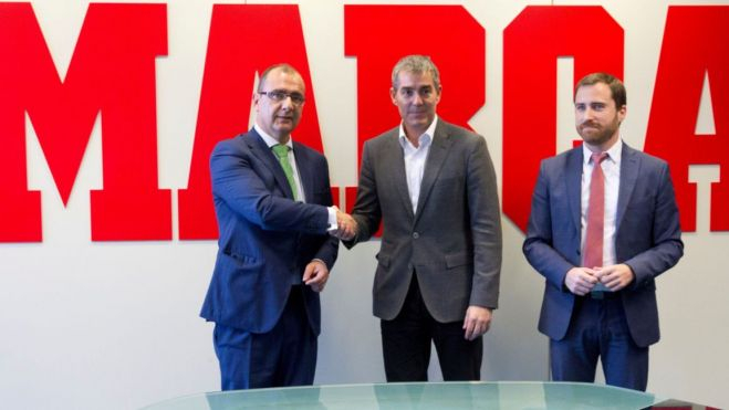 El presidente del Gobierno de Canarias Fernando Clavijo ha firmado esta mañana un convenio con el diario "Marca" para impulsar actividades que sitúen a las islas entre las referencias en Europa de los deportes electrónicos, o "eSports", aprovechando su fiscalidad reducida y sus condiciones naturales.