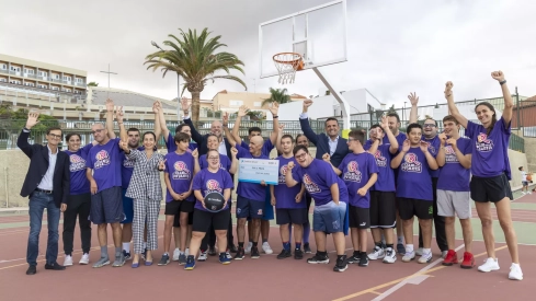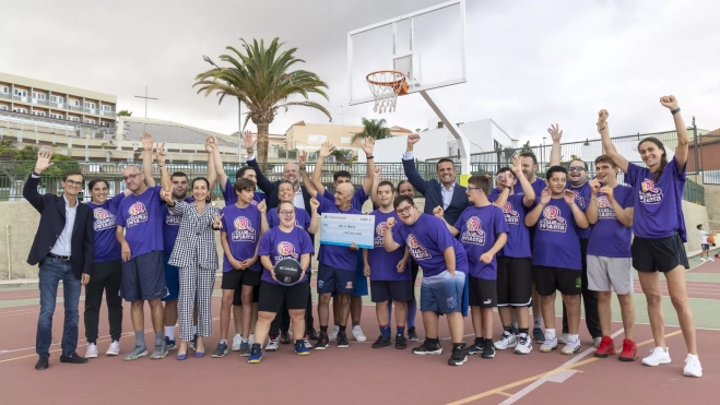 En la parada celebrada en la plaza de La Concepción de La Laguna, los participantes y visitantes lanzaron a canasta con el objetivo de lograr 1.000 triples solidarios, que se han traducido en una ayuda económica de la Fundación "la Caixa" para el primer club inclusivo de baloncesto de Canarias.