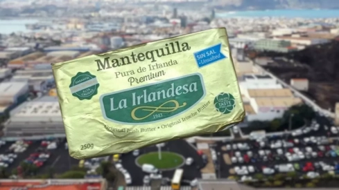 Mantequilla de la marca La Irlandesa sobre el polígono de El Sebadal, en Las Palmas de Gran Canaria./ MONTAJE AH