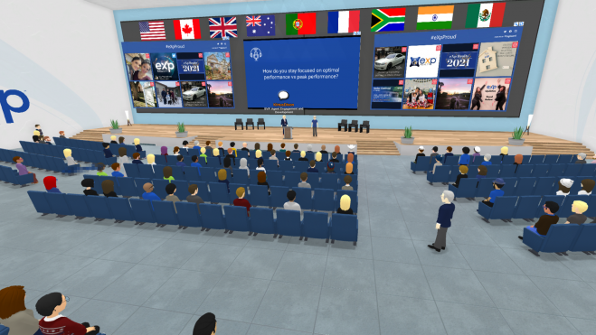 El avatar se mueve por una gran sala virtual. Representa a un agente inmobiliario de España. Mientras pasea puede interactuar con agentes de otros países, con salas de diferentes secciones, recibir una formación o participar en una reunión. Es el modelo de negocio de la inmobiliaria eXp Realty, una empresa que quiere revolucionar el mercado a través de la venta 100% online, y que ya cuenta con el 10% de sus trabajadores nacionales en Canarias.
