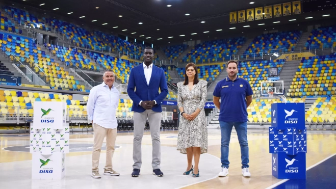 La mañana del martes Sitapha Savané, presidente del Club Baloncesto Gran Canaria; Sara Mateos, directora de la Fundación DISA, y Javier Choren, director del Proyecto Suma han participado en un acto que ha tenido lugar en el Gran Canaria Arena.
