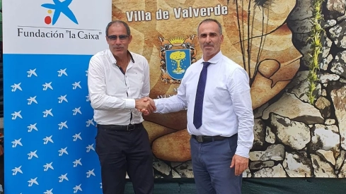 El alcalde de Valverde, Carlos Brito, y el director de la oficina de CaixaBank en el municipio, Pablo Valentín Padrón, han mantenido un encuentro para poner en valor el marco de colaboración por el que la Fundación “la Caixa” y CaixaBank brindan su apoyo a la LXXI edición de las fiestas de la Bajada de la Virgen de los Reyes.