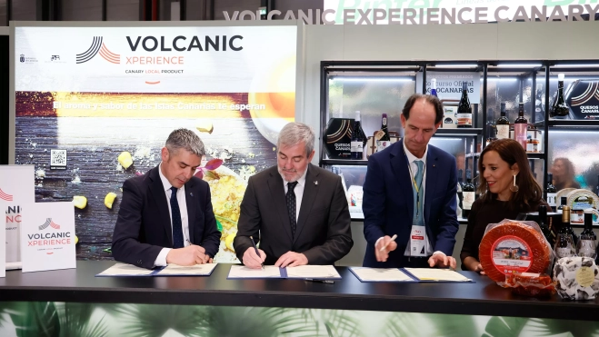 El Gobierno de Canarias y Fred. Olsen Express han firmado en el marco de FITUR 2026 un convenio estratégico de colaboración para reforzar la presencia del producto agroalimentario canario en los trayectos marítimos interinsulares y con la Península, así como para desarrollar acciones conjuntas de información y promoción.