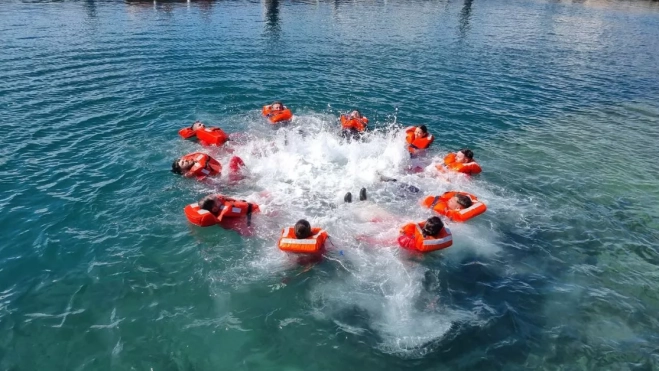 El curso incluye simulaciones prácticas en entornos controlados, entrenamiento en estrategias de supervivencia en el mar, procedimientos de evacuación de emergencia y el uso de equipamiento de seguridad, como chalecos salvavidas con sistemas de respiración de aire comprimido y balsas de emergencia.