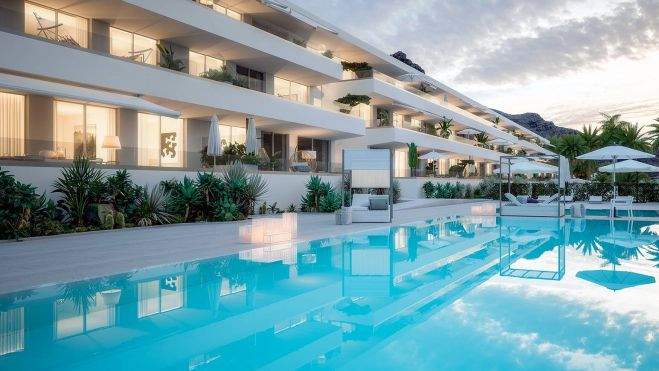 La empresa de promoción inmobiliaria y explotación hotelera sacó al mercado en febrero la primera fase de este complejo en el sur de Tenerife con 37 viviendas, que ha requerido una inversión de ocho millones de euros para construir alojamientos de dos y tres dormitorios con vistas al Atlántico, además de dos piscinas y zonas verdes.
