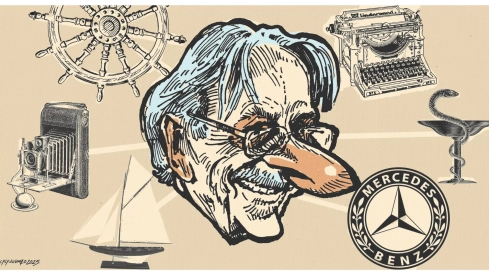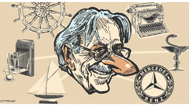 Su colección de automóviles Mercedes-Benz llegó a ser considerada una de las más amplias de Europa, reflejo de la marca con la que su familia se identificó durante décadas. Pero también colecciona pequeños fragmentos de historia: instrumentos farmacéuticos alemanes —en recuerdo del oficio de sus antepasados paternos—, documentos antiguos y piezas vinculadas al puerto y la ciudad que lo vio crecer.
