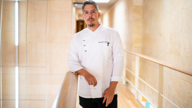 Para ello, Yo-Hwan contará en la cocina con un conocido chef grancanario con el que trabajará mano a mano, Antonio Diego Pérez de los Cobos, vencedor el pasado mes de julio del I Concurso Nacional de Bocadillos de Queso de España, una competición que se celebró en el marco del II Foro internacional del Queso Gran Canaria Cheese Meeting.