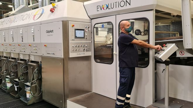 ''Aquí se elaboran las planchas de cartón ondulado para posteriormente someterlas a un troquelado (recorte) e impresión, y de esta manera obtener la caja en plano. Un proceso posterior será el pegado y el armado de la caja con las máquinas formadoras que se encuentran en las empresas de nuestros clientes'', señala Hermoso.