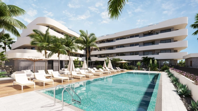 Carena Waves está conformada por 59 viviendas de uno, dos y tres dormitorios, todas con dos baños y abiertas al salón y con una amplia terraza con acceso desde las principales estancias (salón y dormitorios). Esta gran terraza ofrecerá, en muchos de los inmuebles, vistas al mar o al Teide, destaca la promotora. Además, el residencial disfrutará de zonas comunes con piscina, áreas ajardinadas y parking para bicicletas.