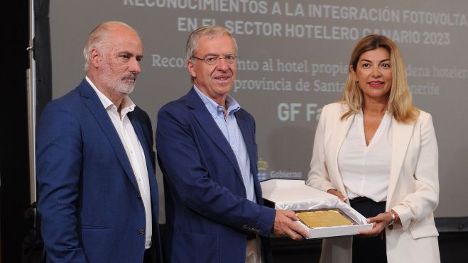 El establecimiento premiado de la provincia de Santa Cruz de Tenerife ha sido Hotel GF Fañabé (4 estrellas) de Tenerife, con una instalación de 110 kW realizada por Medano ingenieros. El director general de UNEF, José Donoso, ha sido el encargado de entregar el galardón, que han recogido la directora del hotel Danisa Álvarez y el coordinador de sostenibilidad Moisés Expósito.