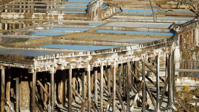 Quien se acerca por primera vez queda impresionado al observar en su paisaje unas estructuras de madera teñidas de color blanco. Son las salinas con sus eras, pozos, canales, sendas y almacenes.