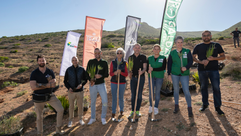 Esta acción se enmarca en el proyecto 'Plantando futuro contigo', puesto en marcha por Chocolates Trapa con el objetivo de combatir la crisis climática cultivando ejemplares en zonas desarboladas en las que las condiciones del suelo dificultan una regeneración natural del bosque. También asistieron a esta jornada la directora de la Fundación DinoSol, Virginia Ávila, el director comercial de Chocolates Trapa, José Antonio Lozano, y el director de Comunicación, Ángel Amador, además de numerosos trabajadores de HiperDino y vecinos y vecinas de Gáldar.