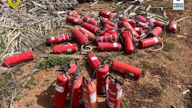 Según informan desde el cuerpo policial a través de un comunicado, ocurrió en la mañana de este domingo 5 de abril, y el hallazgo fue posible gracias al aviso de un vecino que alertó a las autoridades sobre la presencia de residuos en la zona. Una vez en el lugar, los agentes comprobaron la existencia de cerca de 35 extintores abandonados, junto a otros desechos como restos de madera.