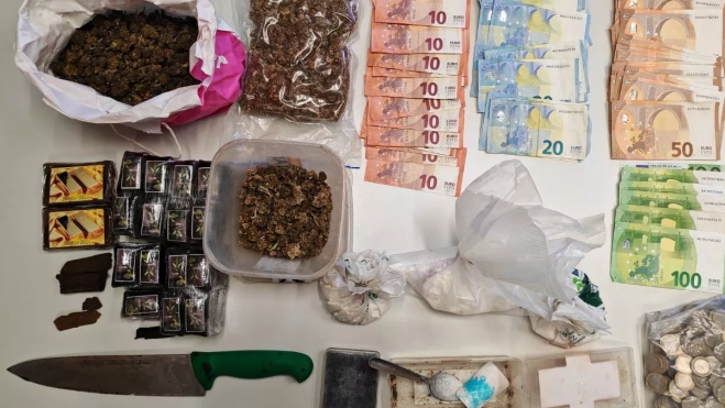 En dos registros domiciliarios se incautaron 3.651 gramos de hachís, 1.066 de cocaína, 445 de marihuana, 47 pastillas anabolizantes, 39.164 euros en efectivo, además de armas blancas, utensilios de corte y pesaje y dos vehículos destinados a la distribución.