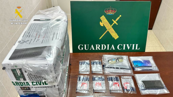 Esta actuación conllevó a la realización de un registro domiciliario en el que la Guardia Civil localizó varias prendas de ropa utilizadas en el momento de sacar el dinero en los cajeros automáticos y otras pruebas de convicción como una torre de ordenador montada con componentes personalizados de última generación, ocho porta tarjetas SIM con hasta ocho líneas de teléfono asociadas, dos teléfonos móviles, haciéndose evidente que dichos elementos podrían guardar relación directa con los hechos investigados.