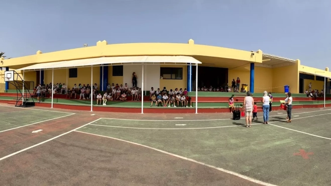 Por su parte, la consejera de Fomento del Empleo, Nuria Cabrera, ha explicado que “las labores se han llevado tanto a infraestructuras exteriores, con arreglo de muros, vallas, pinturas de canchas deportivas, acondicionamiento de jardines, impermeabiliziación, así como en el interior de aulas”.