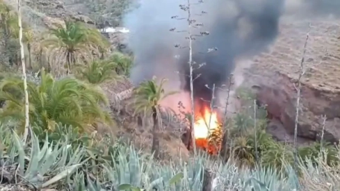 La explosión de un artefacto en una casa cueva ha provocado el fuego en el barranco de Tirajana.