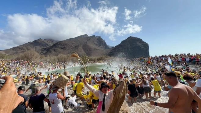 La Aldea congregó este jueves a ocho mil personas en el Día del Charco, la celebración más popular y representativa de las Fiestas patronales en honor a San Nicolás de Tolentino.