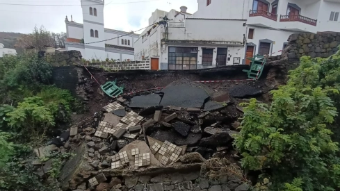 El Ayuntamiento de Moya ha procedido al cierre inmediato al tráfico de la calle Los Romeros, en el núcleo de Fontanales, tras el colapso de un muro de carga que da soporte a la calzada. El incidente, localizado en la trasera de la iglesia de la localidad, se produjo como consecuencia directa de la saturación de agua en el terreno tras las fuertes precipitaciones que han afectado al norte y a las medianías de Gran Canaria este fin de semana.