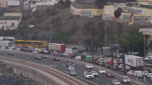 A esta situación se suma la avería de un camión en el punto kilométrico 12 (P.K. 12) de la GC-1, también en dirección Sur, lo que está provocando aún más retenciones y obligando a los conductores a circular a paso lento.