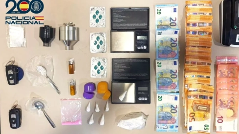 El dispositivo, desarrollado el pasado 7 de agosto, permitió incautar 60 gramos de cocaína, seis monodosis de la misma sustancia, 1,5 gramos de cocaína rosa “Tusi”, 12 pastillas de viagra, dos básculas de precisión, un detector de billetes falsos, material para la preparación y distribución de droga y 5.075 euros en efectivo.