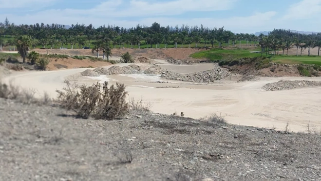 La tercera actuación controvertida es el movimiento de áridos procedentes de una parcela contigua al campo de golf. Lopesan tiene autorizado en ese suelo un hotel y varios equipamientos comerciales, pero no la extracción de áridos para rellenar el cauce del barranco colindante para mejorar su campo de golf.