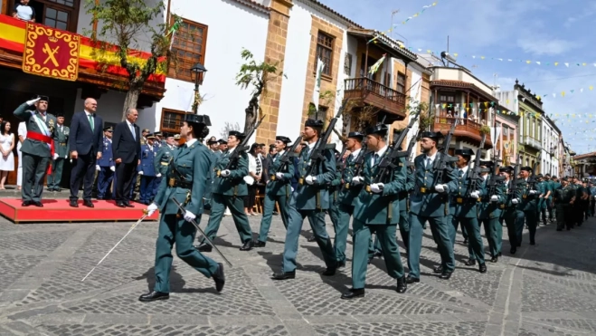 La parada militar se inició dando la bienvenida a los asistentes, novedades y revista a la fuerza, lectura de concesión y entrega de condecoraciones que dieron paso a una alocución del General Jefe de la Zona de Canarias, Juan Hernández Mosquera y del Delegado del Gobierno en la Comunidad autónoma, Anselmo Pestana continuando con el acto de homenaje a los que dieron su vida por España, entonación del Himno del Cuerpo y finalizando con un desfile por la Calle Real y la Plaza del Pino.