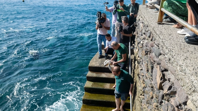 Según el comunicado del Cabildo de Gran Canaria, ambas tortugas han sido devueltas al mar tras recibir tratamiento en el centro de recuperación por diversas lesiones.