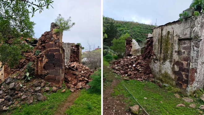 Las últimas lluvias no fueron benevolentes con la Ermita de San José de Caideros. El edificio, que ya presentaba un deterioro notable, sufrió el desprendimiento de parte de uno de sus muros, un hecho que pone el foco en la necesidad de rehabilitar este inmueble en el norte de Gran Canaria, declarado Bien de Interés Cultural (BIC).