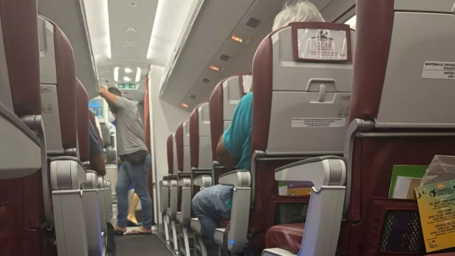 "Nuestro vuelo salía a las 19:05 hora peninsular. Llegamos al aeropuerto sobre las 17:30. Facturamos y nos dijeron que estábamos en hora. Pasamos el control a las 18:30, nos embarcaron y nos llevaron a pie de avión.