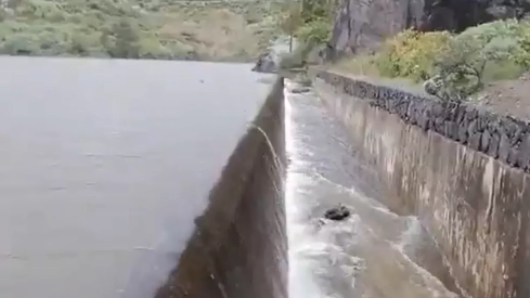 La presa de Los Pérez, en Agaete, ha comenzado a desaguar por el aliviadero a las 17:20 horas, tras el aumento del caudal provocado por las lluvias de la borrasca Therese, según ha confirmado el Ayuntamiento de Gáldar en sus redes sociales. Se trata de la tercera vez en la historia que el embalse llega a rebosar.