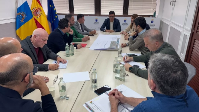 El consejero de Obras Públicas, Vivienda y Movilidad del Gobierno de Canarias, Pablo Rodríguez, ha mantenido este martes, 13 de enero, una reunión de trabajo con el presidente de la Mancomunidad del Norte de Gran Canaria y alcalde de Gáldar, Teodoro Sosa, así como con los alcaldes de Arucas, Juan Jesús Facundo, y de la Villa de Moya, Raúl Afonso, en la que se ha alcanzado un acuerdo sobre el trazado del proyecto de acondicionamiento de la GC-2 en el tramo Bañaderos–El Pagador.